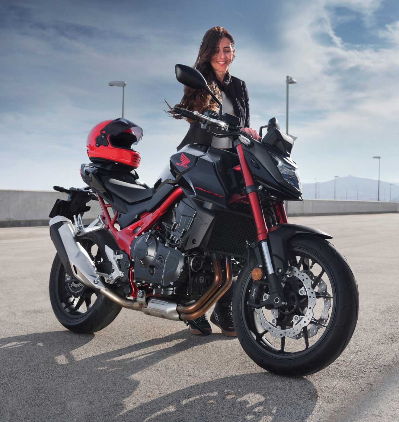 Die CB750 Hornet ist in aller Munde. Das Leistungsgewicht sorgt dabei für den meisten Gesprächsstoff. Der völlig neuartige Parallel-Zweizylindermotor ist mit leistungsfähigen Vortex-Generatoren ausgestattet und besticht durch eine verbesserte Einlasseffizienz. Darüber hinaus sorgt die Supersport-Zylindertechnologie für reduzierte Reibung, 67,5 kW in der Spitze sowie ein Drehmoment von 75 Nm, wodurch sich das Drehmoment im mittleren Bereich des Drehzahlmessers einpendelt. Das fühlt sich alles großartig an und klingt auch so, dank des tiefen, volltönenden Bass-Sounds im unteren Drehzahlbereich. Ein derart starker Motor in einem so leichten Chassis bedeutet, dass für dich nur noch eine Sache zu tun bleibt: festhalten und genießen!